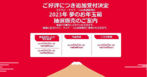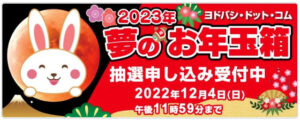 2023年ヨドバシカメラの福袋「夢のお年玉箱2023」の抽選予約申し込みは、2022年12月4日(日)23:59で終了となりました。